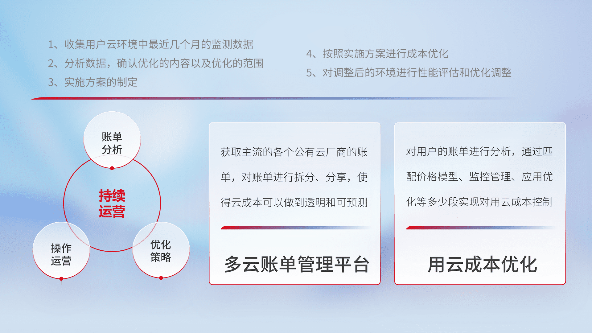 运用智能化工具分析云资源,,提供日常费用可视化工具,,,自动账单拆分,,成本优化云上费用,,降本增效。。